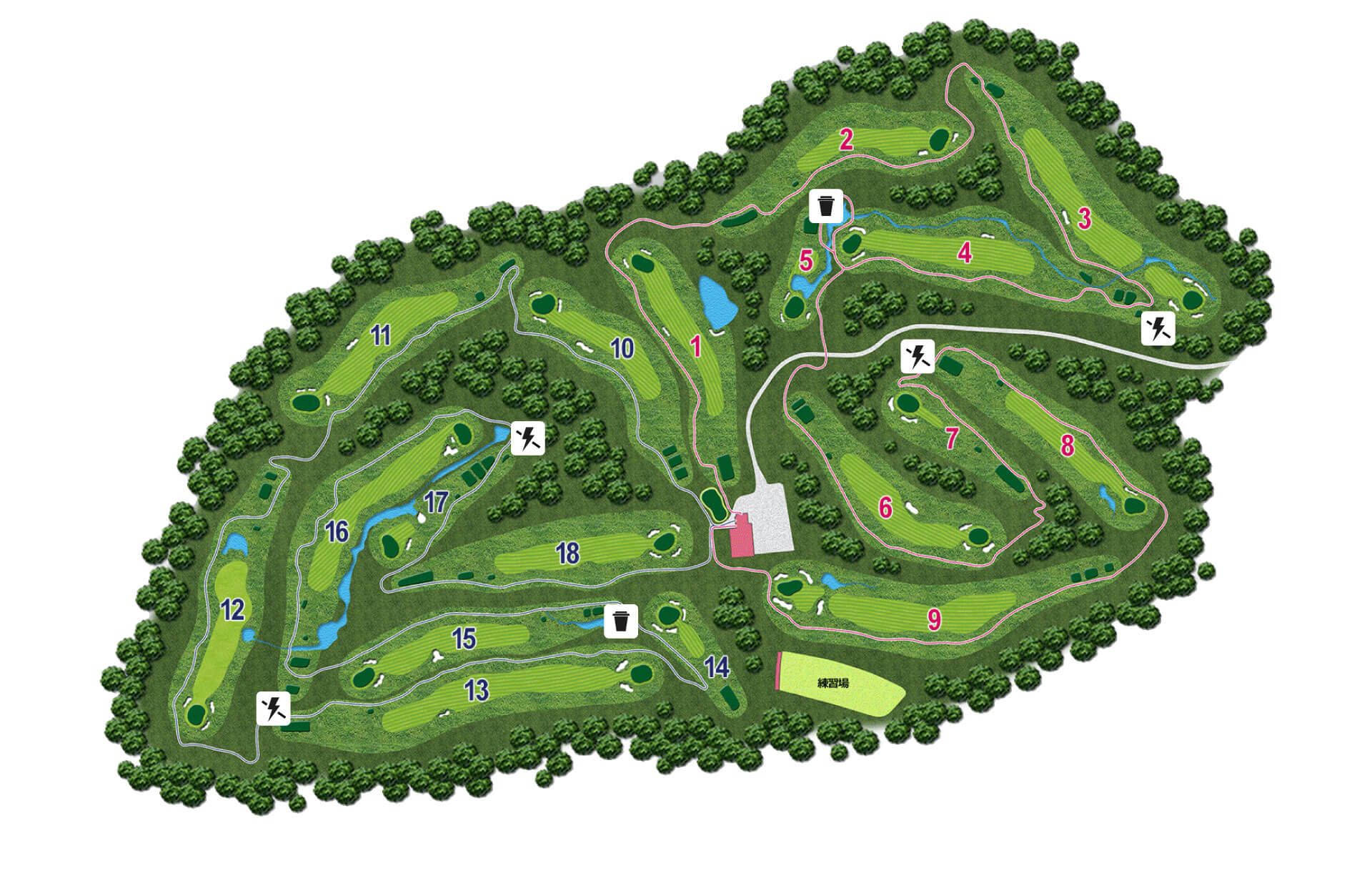また、湿気のない気候は夏でも爽快なゴルフをお楽しみいただけます。 広々としたフェアウェイ(洋芝/ケンタッキーブルーグラス)とベントのワングリーンが特徴です。