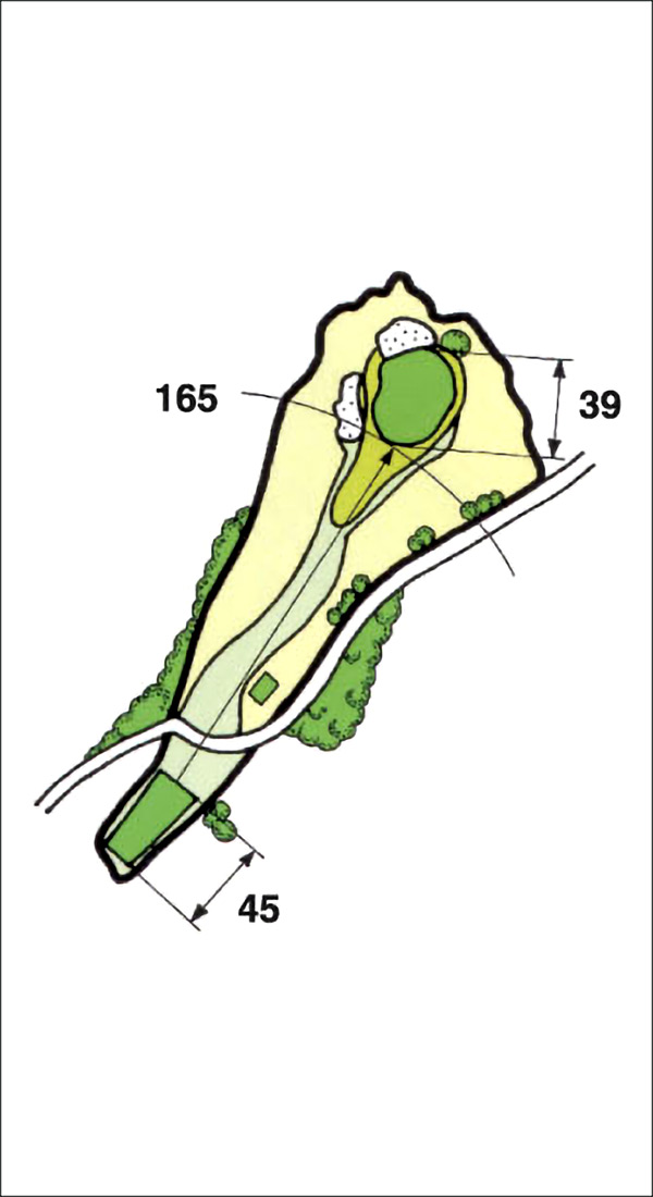 距離が長いショートホール。左はずすとパーは難しい。 グリーン右からは寄せやすい。