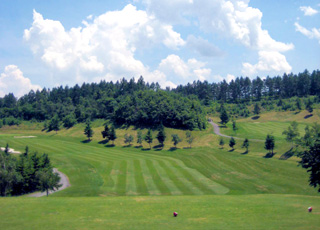 グリーンを囲むバンカーに注意。特にカップが右に有る場合は無理に狙わず、センターへ。グリーン右は馬の背になっています。